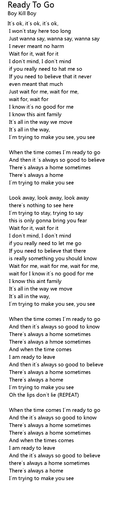 | Song | Ready To Go |