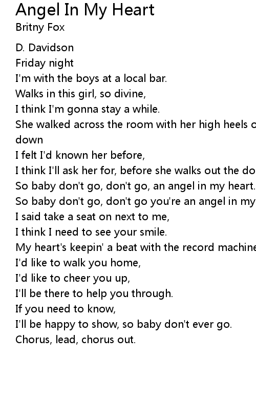 So baby don't go, don't go, an angel in my heart. |