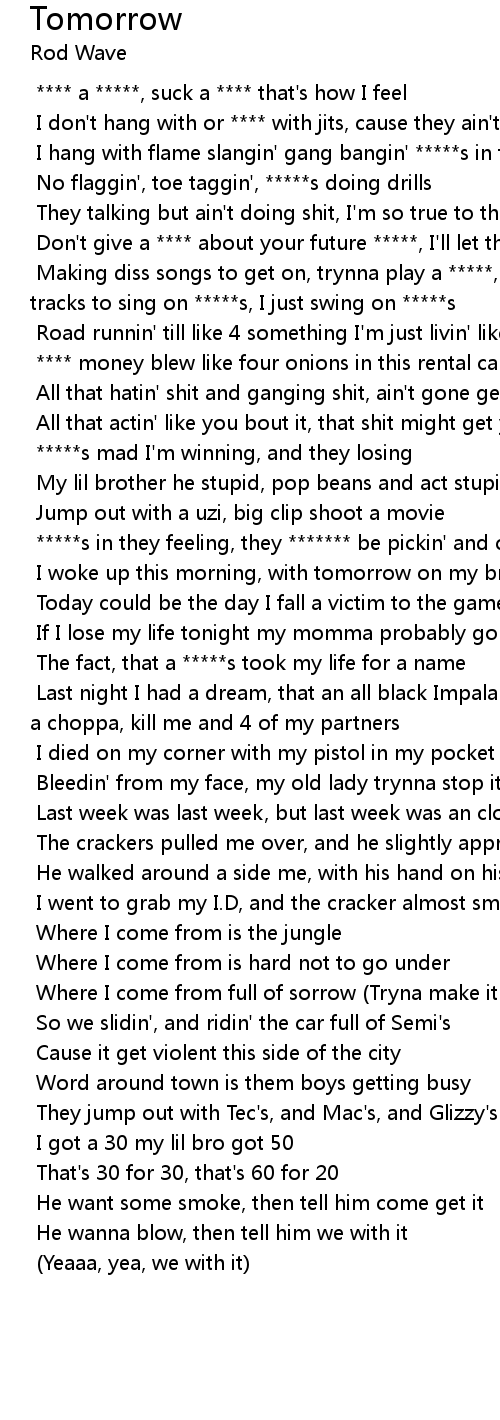 Where I come from full of sorrow (Tryna make it to tomorrow) |
