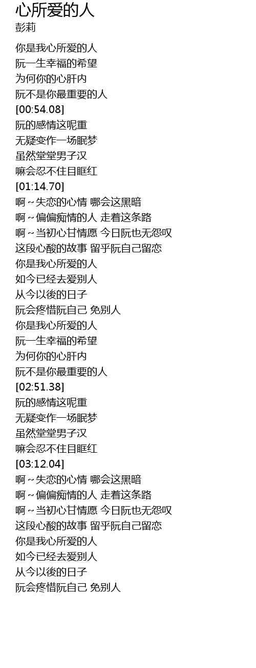 | [02:34.71] | nǐ shì wǒ xīn suǒ ài de rén |