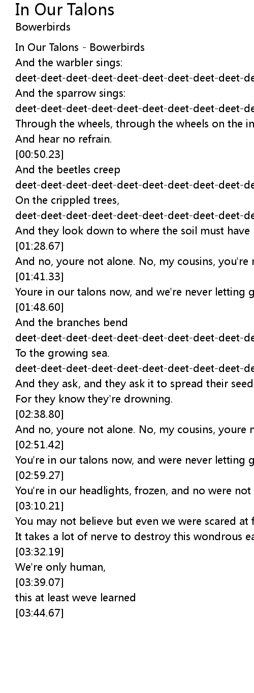 In Our Talons - Bowerbirds |