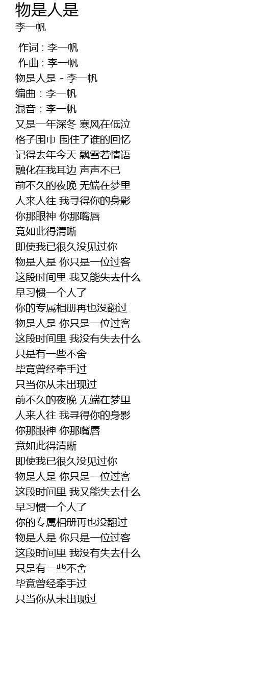 | [01:45.700] | 物是人是 你只是一位过客 |