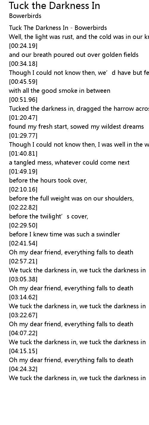 | [00:03.75] | Tuck The Darkness In - Bowerbirds |