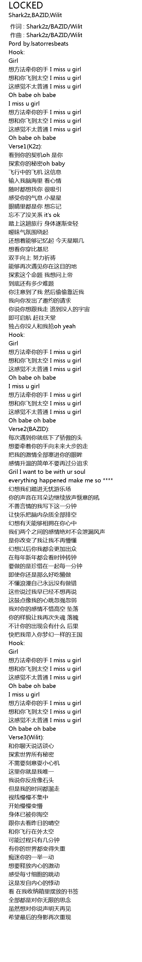 | [00:38.920] | 想和你飞到太空 I miss u girl |