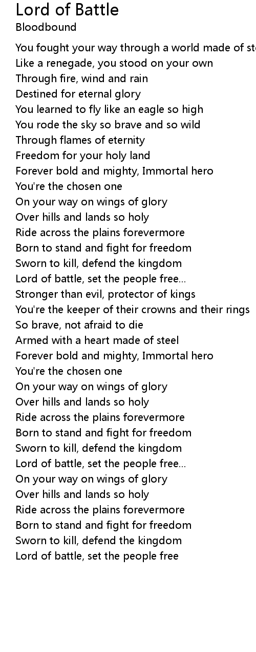 Lord of battle, set the people free |