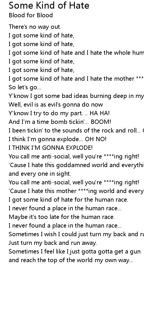 I got some kind of hate and I hate the whole human race. |