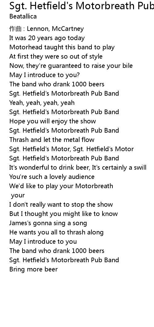 | Song | Sgt. Hetfield's Motorbreath Pub Band |