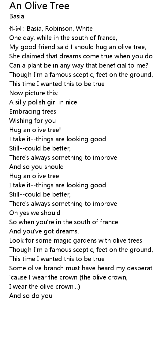 | Song | An Olive Tree |