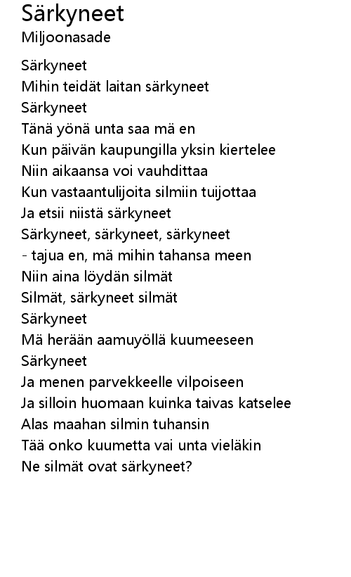 | Kun vastaantulijoita silmiin tuijottaa | |