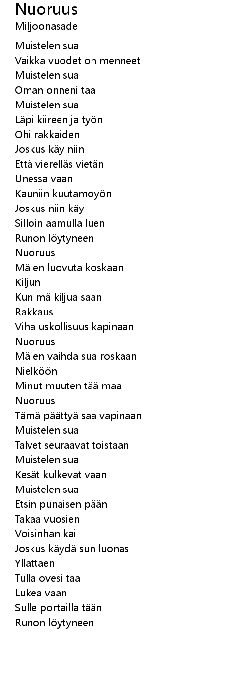| Song | Nuoruus |