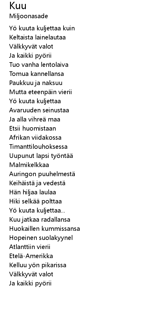 Yö kuuta kuljettaa kuin |