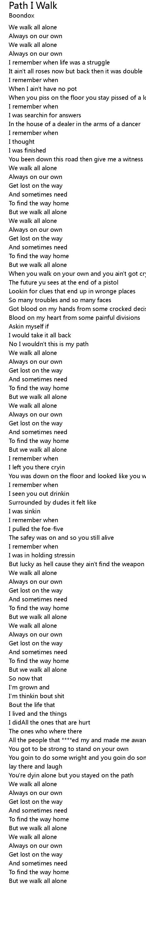 You're dyin alone but you stayed on the path |
