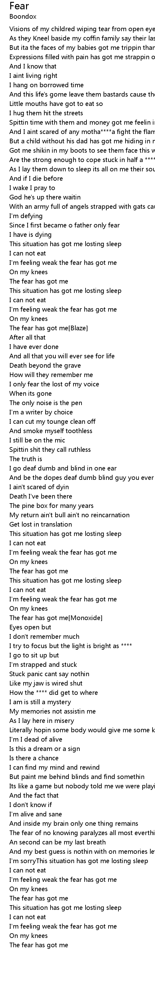 Fear Lyrics