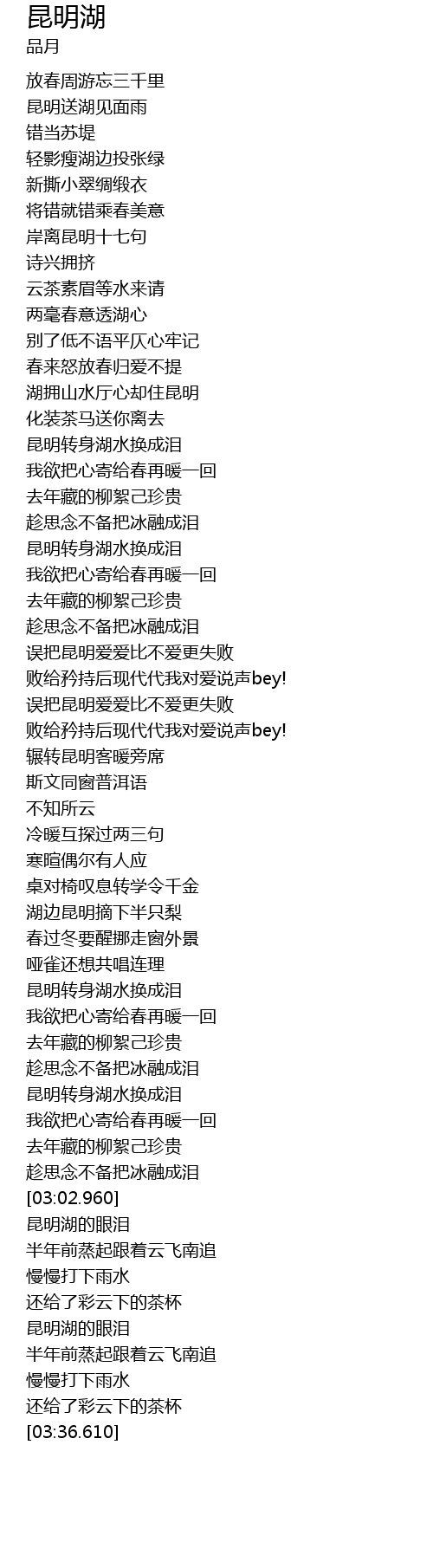 | [03:03.750] | kūn míng hú de yǎn lèi |