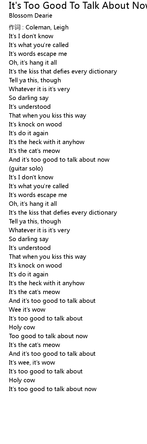 | It' s too good to talk about now |