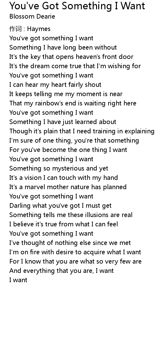 | Song | You've Got Something I Want |
