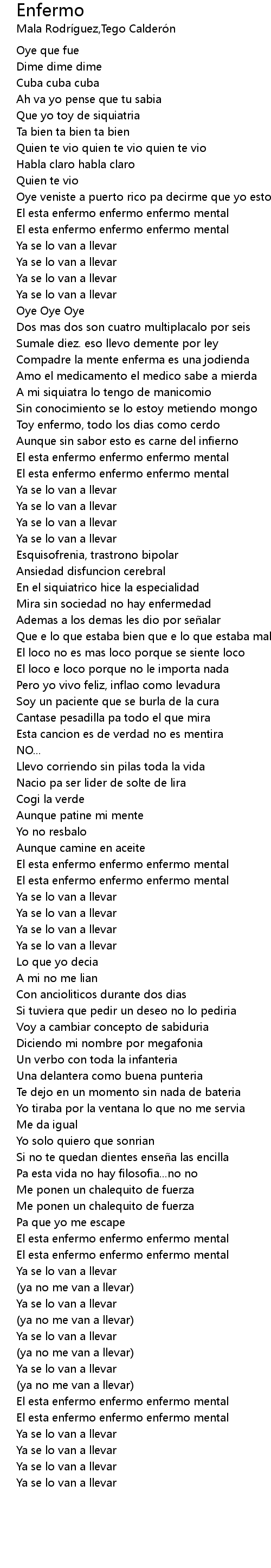 | Song | Enfermo |