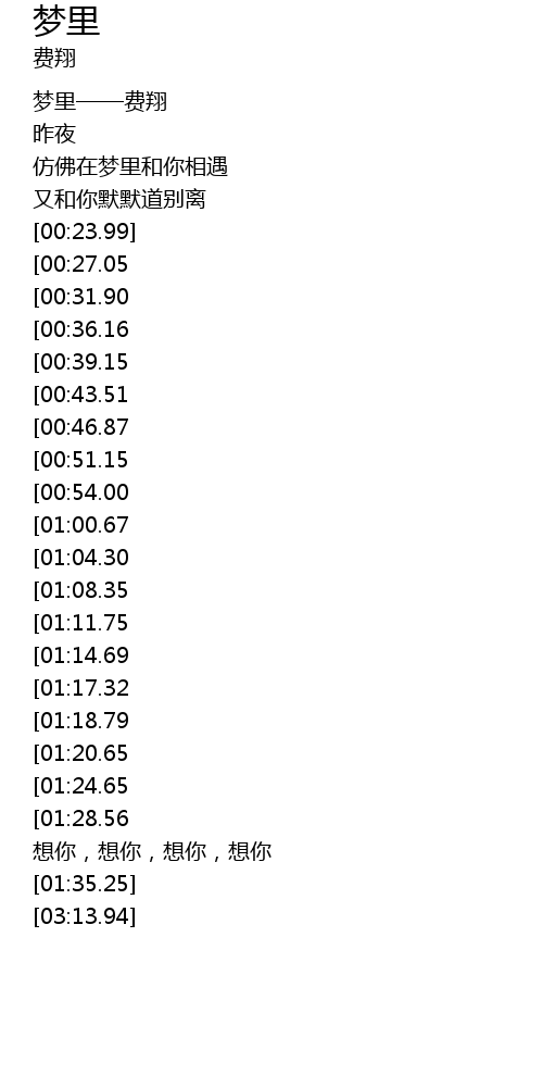 | [00:02.71] | 梦里——费翔 |