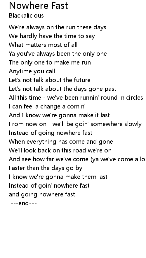 Instead of goin' nowhere fast |