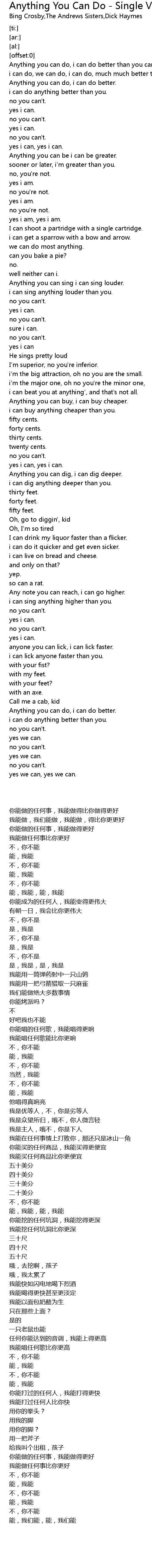 Anything you can do, i can do better than you can do, |