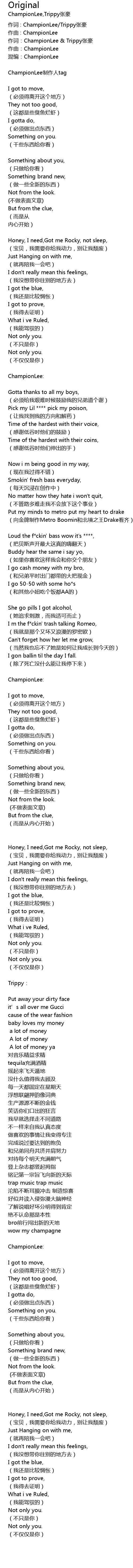 | 作词:ChampionLee & Trippy张豪 | |