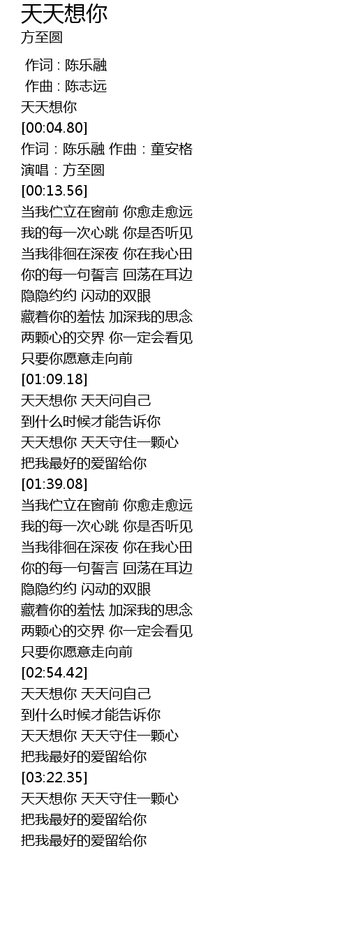 | [03:24.85] | 天天想你 天天守住一颗心 |