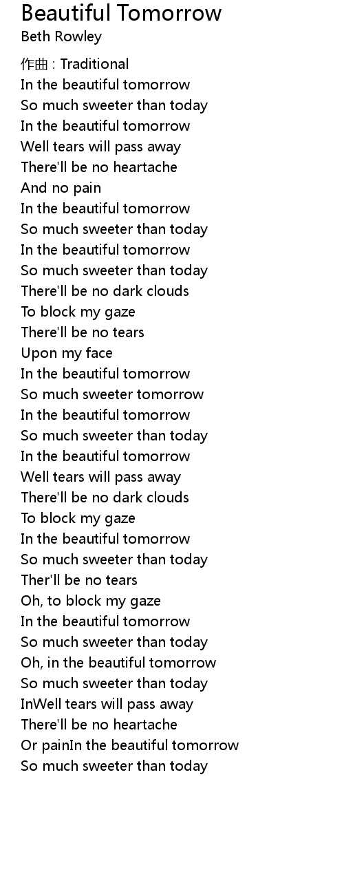 | Oh, in the beautiful tomorrow | |
