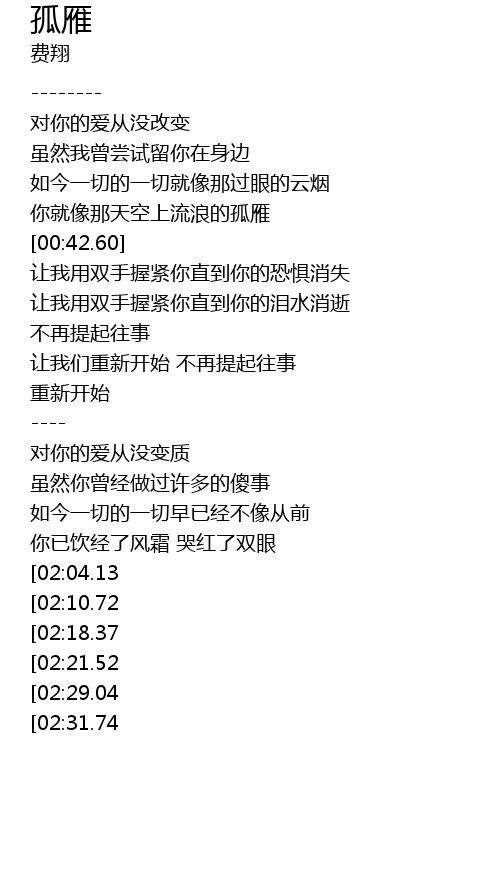 | [00:36.97] | 你就像那天空上流浪的孤雁 |