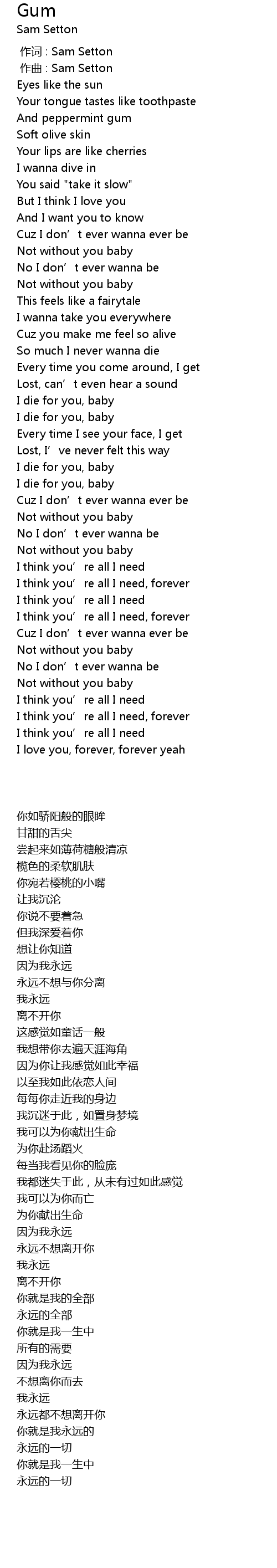 | [00:00.000] | 作词 : Sam Setton |