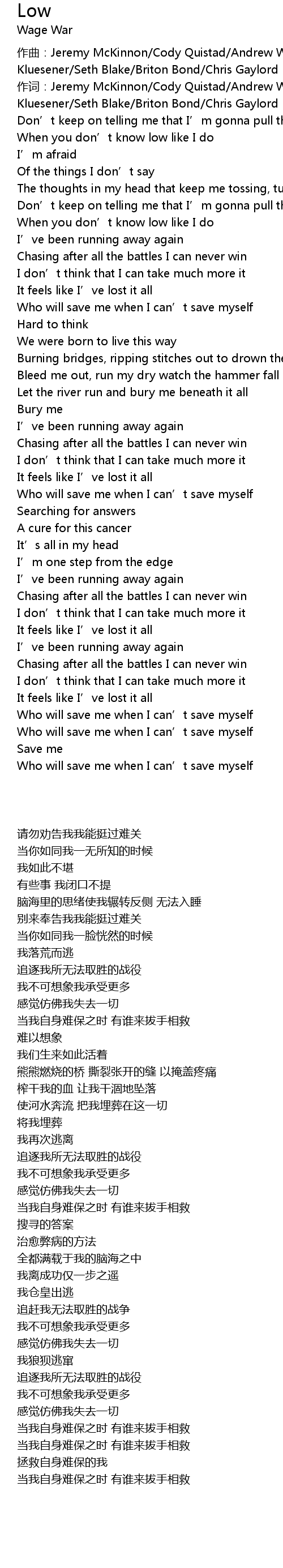 | [00:06.10] | 作词:Jeremy McKinnon/Cody Quistad/Andrew Wade/Stephen Kluesener/Seth Blake/Briton Bond/Chris Gaylord |
