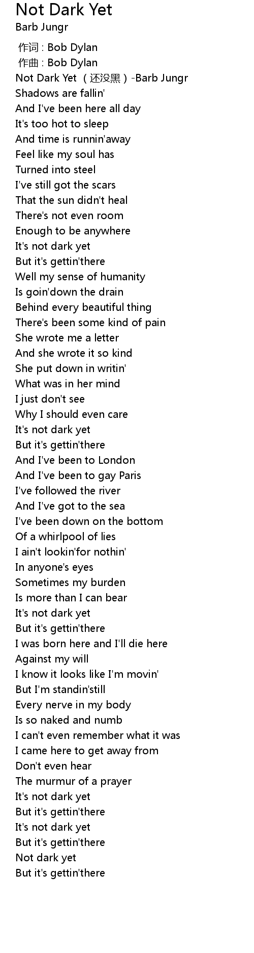 | [00:00.00] | Not Dark Yet hai mei hei Barb Jungr |