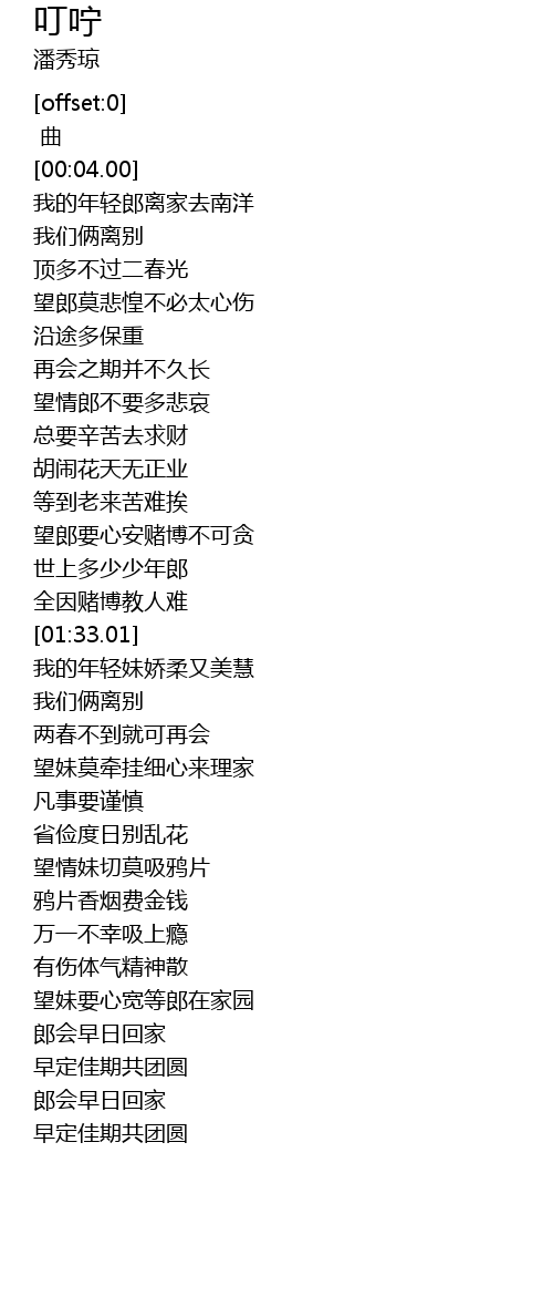 叮咛 ding ning Lyrics