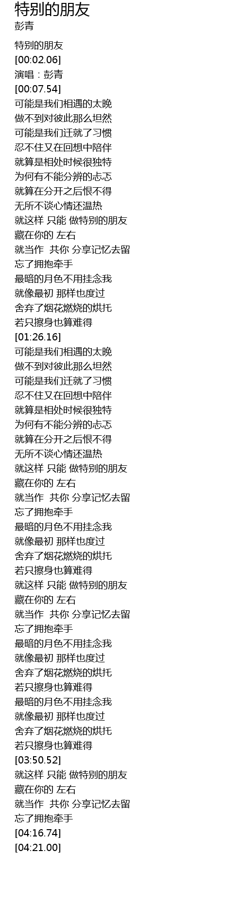 | [00:00.00] | 特别的朋友 |