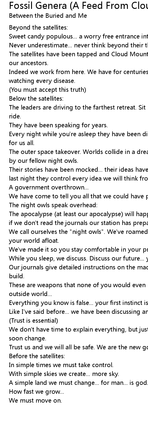 Fossil Genera (A Feed From Cloud Mountain) Lyrics