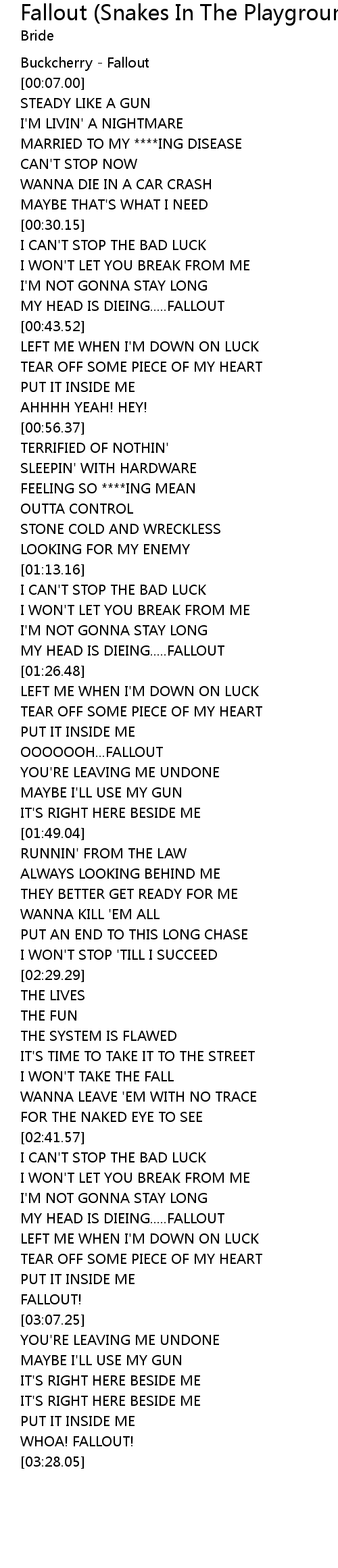 Fallout (Snakes In The Playground Album Version) Lyrics
