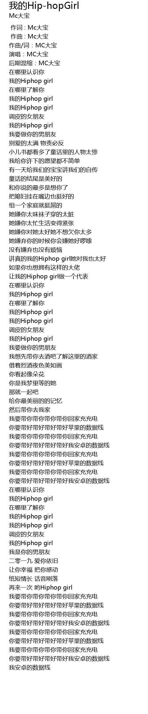 | [02:50.33] | zai lai yi ci yo Hiphop girl |