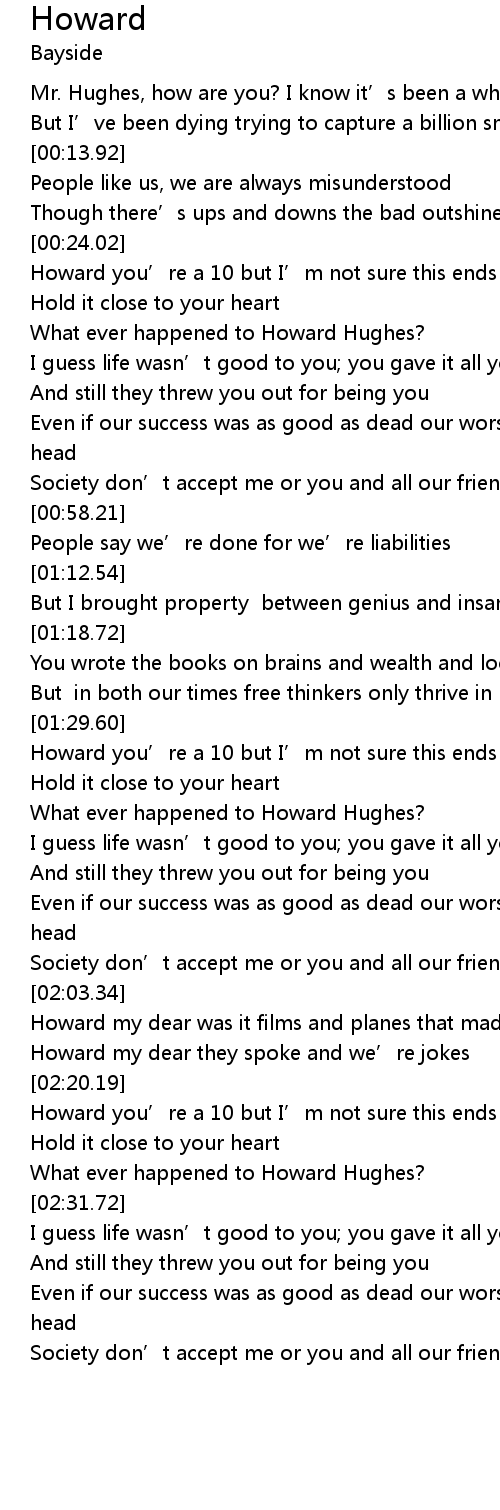 | [00:35.76] | What ever happened to Howard Hughes? |