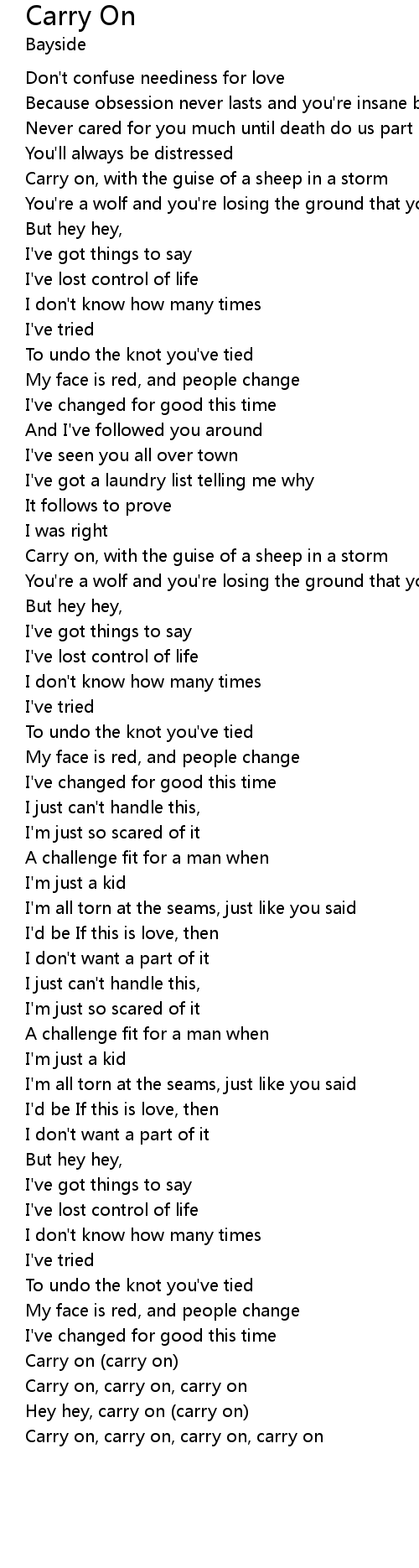 Carry on, carry on, carry on, carry on |