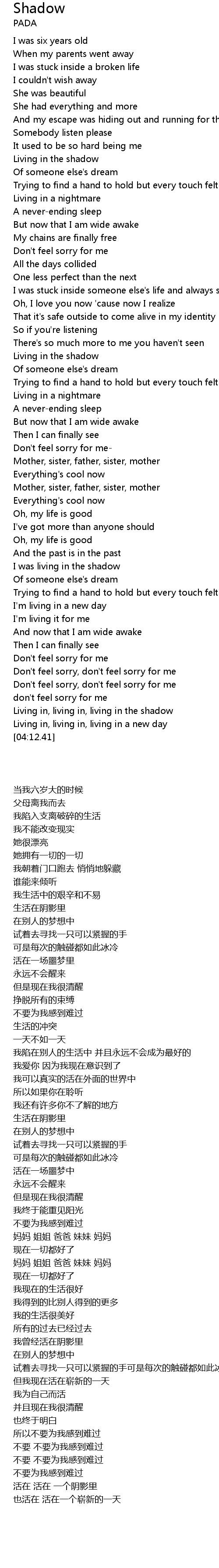 | [02:34.09] | Mother, sister, father, sister, mother |