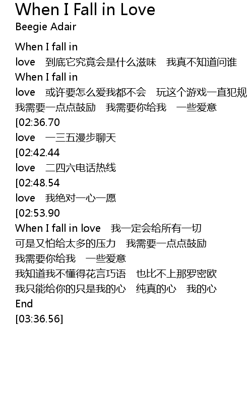 | [03:00.32][02:36.70][01:46.26][00:47.67] | When I fall in love yi san wu man bu liao tian |
