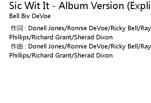 | [00:00.000] | zuò cí : Donell Jones Ronnie DeVoe Ricky Bell Raymond Grant Neil Phillips Richard Grant Sherad Dixon |