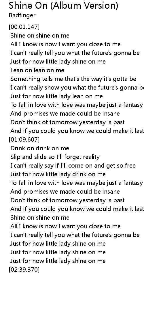 [02:11.404] Shine on shine on me