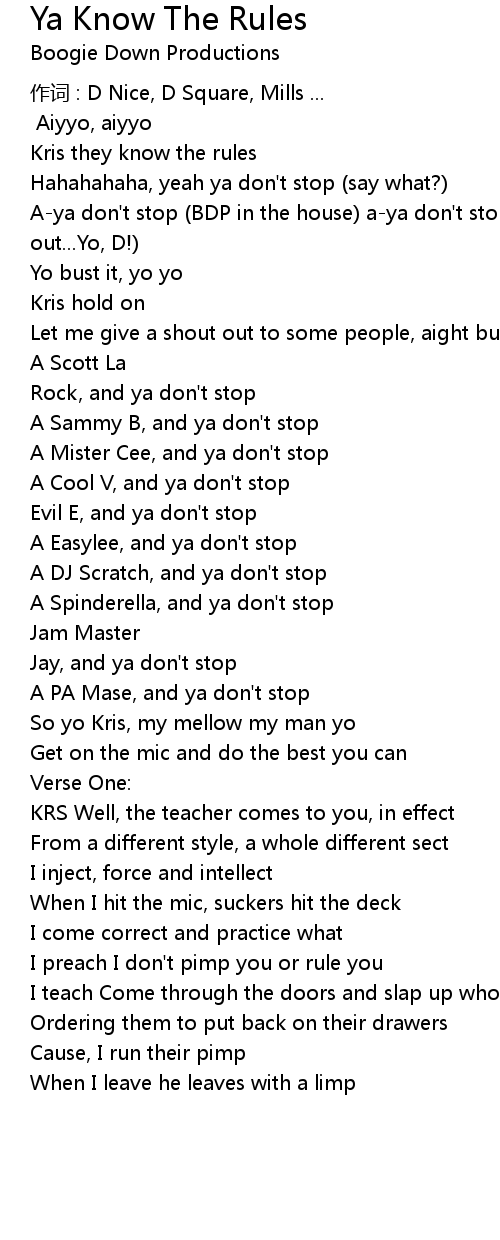| Song | Ya Know The Rules |