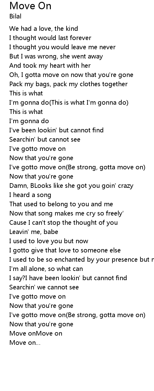 | Oh, I gotta move on now that you're gone | |