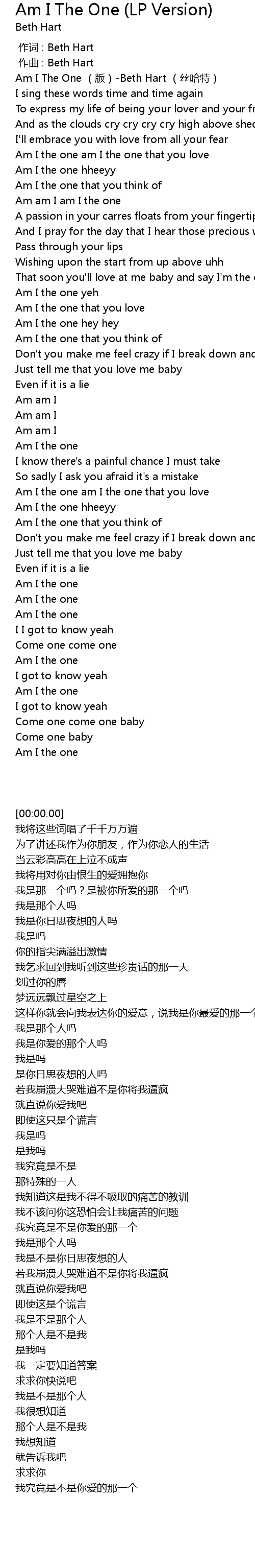 | [00:00.00] | Am I The One bǎn Beth Hart sī hā tè |