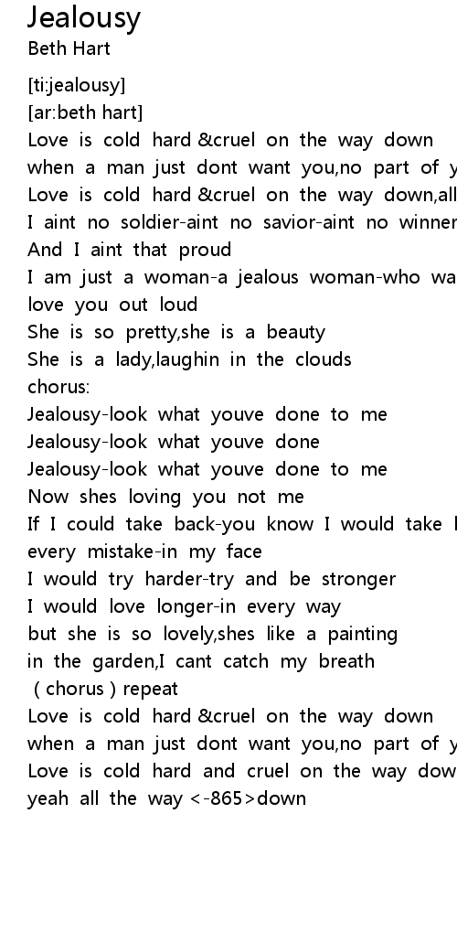 | [01:07.16] | I am just a woman-a jealous woman-who wants to love you |