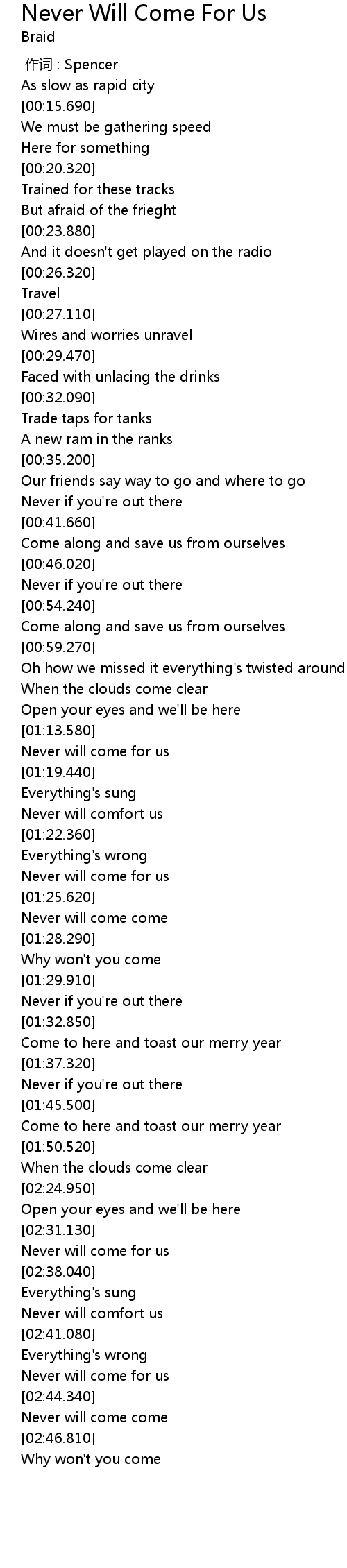 | [01:01.660] | Oh how we missed it everything's twisted around |