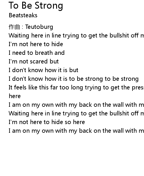 | I don' t know how it is to be strong to be strong | |