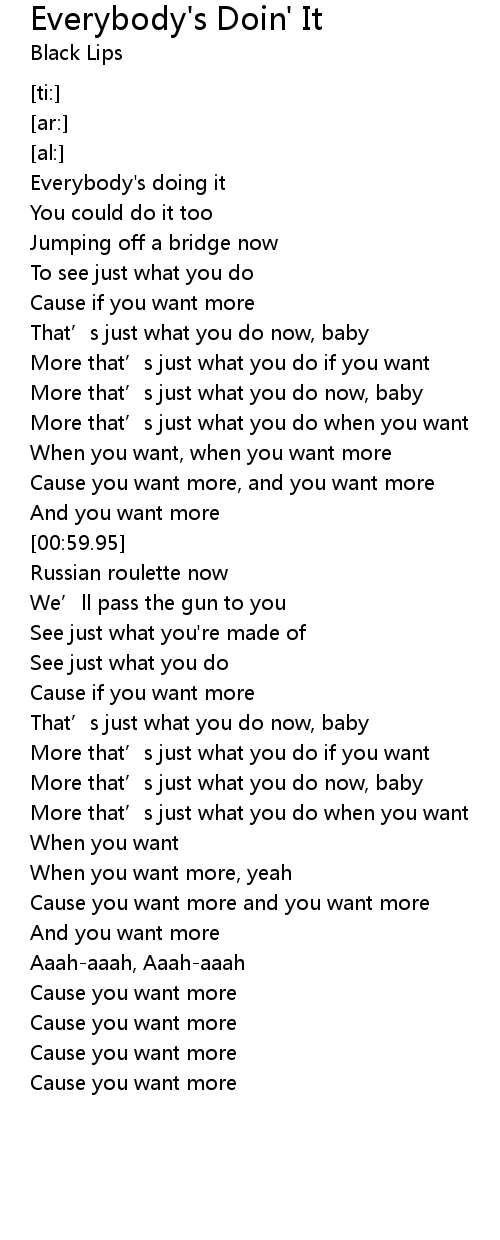 | [00:09.17] | Everybody' s doing it |