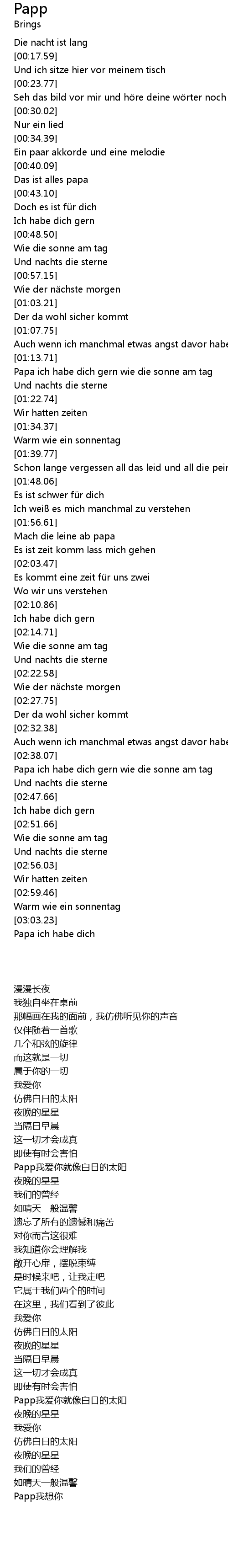 | [01:15.63] | Papa ich habe dich gern wie die sonne am tag |